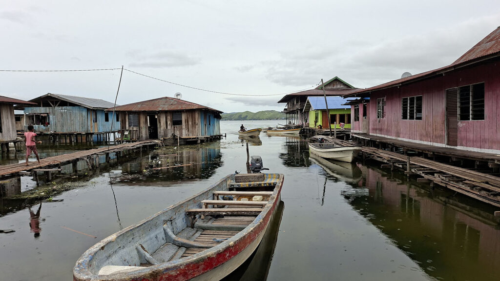 Setelah mengambil foto berbagai sudut yang menurut saya menarik, perjalanan berlanjut ke Kampung Yoboi, sekitar 20 menit dari Khalkote. Di perjalanan, berhenti sejenak di Pantai Howe, yang sepertinya jadi salah satu tempat favorit warga lokal untuk nongkrong, minum kopi dan menikmati pemandangan danau. Kampung Yoboi diakses dengan kapal tradisional melalui Dermaga Yahim. Banyak yang dilihat di sekitar Dermaga Yahim, mulai dari kios-kios jualan mama-mama, yang sebagian besar menjual buah pinang, juga beberapa tugu salib yang menurut saya cukup menawan, karena ukurannya yang lumayan besar.