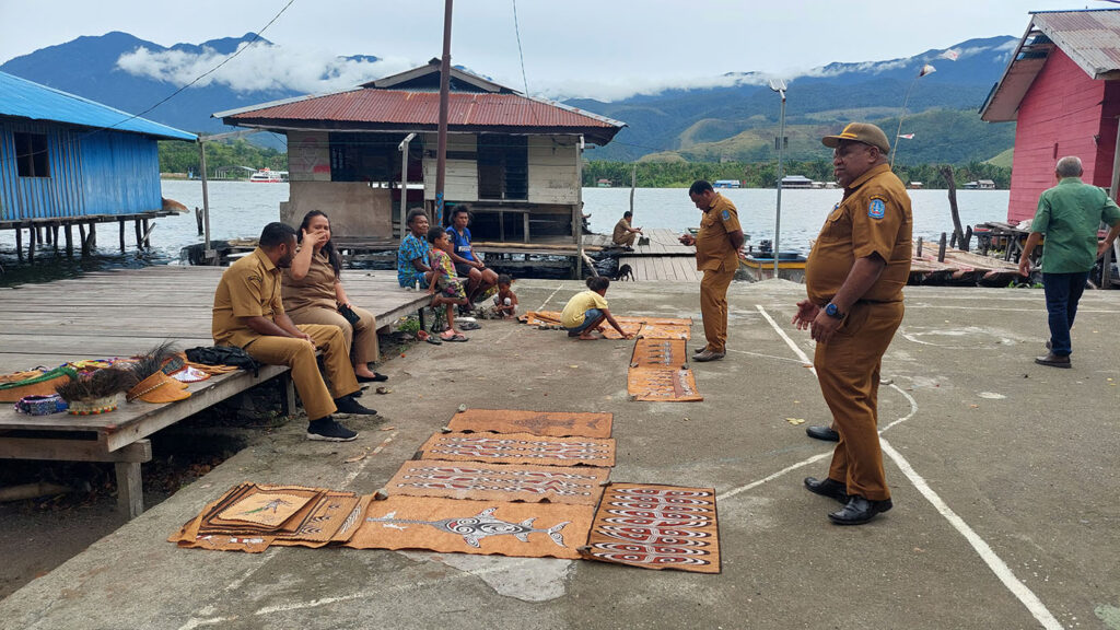 Kunjungan berlanjut ke Kampung Asei yang kami akses melalui Dermaga Khalkote. Di sekitar Dermaga Khalkote adalah lokasi penyelenggaraan event tahunan Festival Danau Sentani. Setelah 20 menit menyeberang dengan perahu tradisional, saya bisa melihat suasana di Kampung Asei Besar, yang merupakan kampung wisata budaya di pulau Danau Sentani, dimana warganya mahir membuat kerajinan dari kulit kayu. Tak banyak yang bisa dinikmati sebenarnya. Mungkin karena bulan puasa dan sepi pengunjung, jadinya saya tidak melihat adanya aktivitas wisatawan.