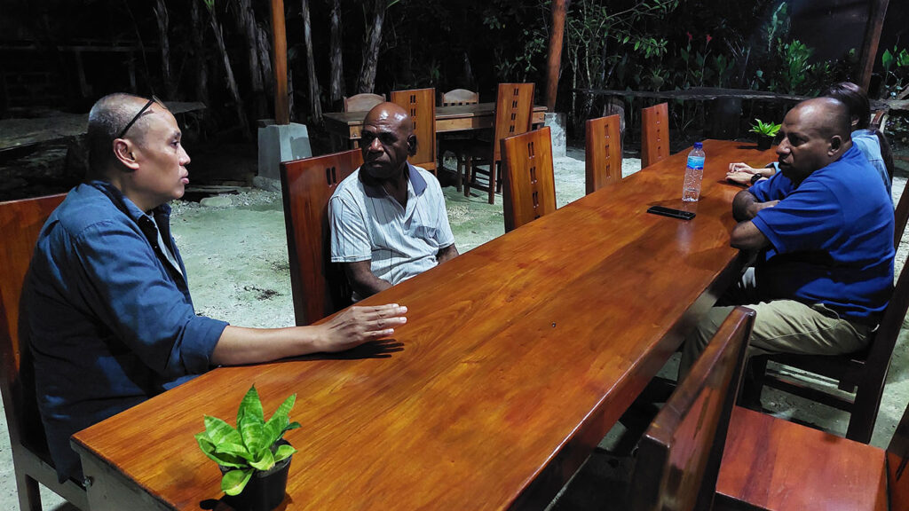 Selesai dengan perjalanan “napak tilas”, kami bergerak ke Nimbokrang. Setelah istirahat sejenak untuk berbuka puasa di rest area dalam perjalanan ke Nimbokrang, kami tiba dan bermalam di Isyo Lodge yang dikelola oleh Pak Alex Waisimon, seorang pegiat lingkungan yang pernah lama bekerja di industri pariwisata di Bali.